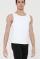ややローカットなラウンドネックの袖なしタンクトップです。